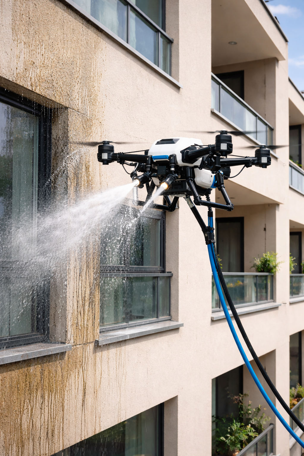 Unsere speziell ausgerüsteten Reinigungsdrohnen entfernen Schmutz, Staub, Algen und Umweltrückstände präzise aus der Luft – ganz ohne Gerüst, Hubsteiger oder aufwendige Absperrungen.